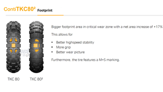Vylepšená přední pneumatika: Přední pneumatika má optimalizované uspořádání bloků s menším poměrem styčné plochy pro lepší přilnavost na tvrdém a kamenitém povrchu. Technologie Progressive Cornering Block Technology (PCBT) pomáhá pneumatice zakousnout se do nečistot a zlepšuje přilnavost v zatáčkách.